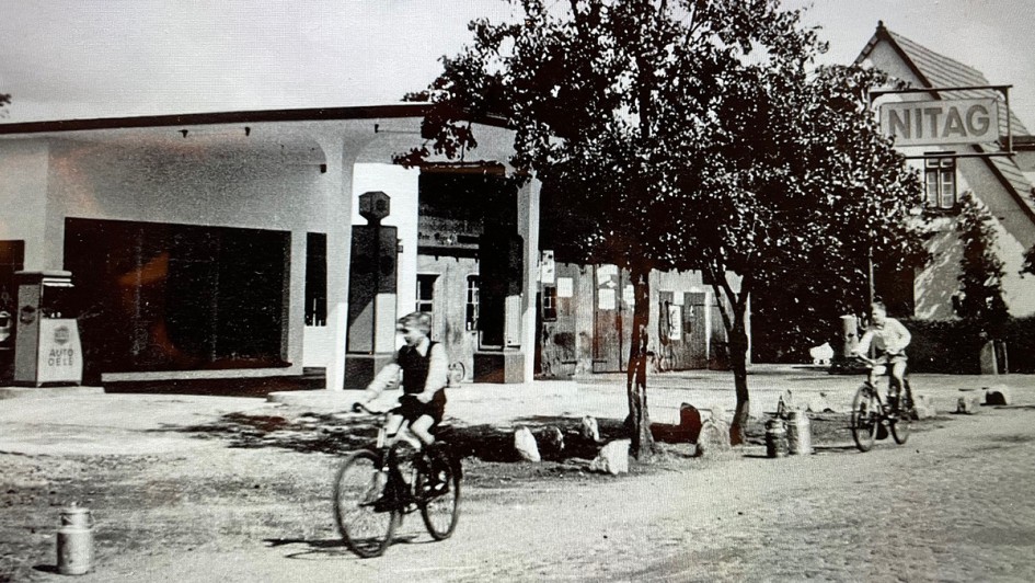 von 8: In den 1930er-Jahren gab es nicht viele Autos in Tarmstedt und die Tankstelle bestand anfangs lediglich aus einem Benzinzapf-Fass von Nitag.