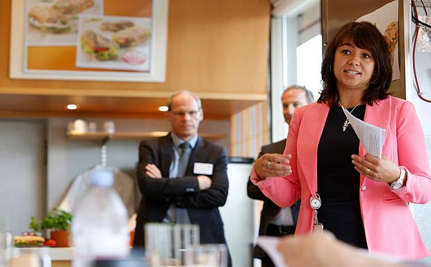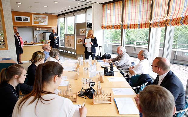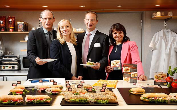 von 10: (v.l.n.r.) Rainer Kraus, Leiter Tankstellen- und Shopgeschäft (Aral), Produktmanagerin Sandra Schütte (Aral), Matthias Pape, bei Aral verantwortlich für die Angebotsentwicklung im Shop- und Food-Service-Geschäft, Anja Lippmann, Marketingexpertin (Hiestand & Suhr).