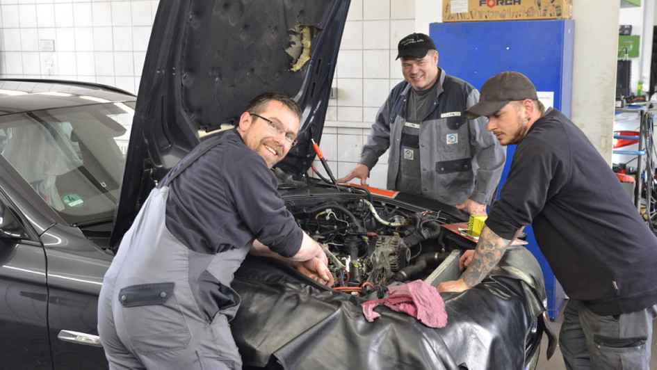 von 14: Hier fühlt sich Friz (M.), gelernter KFZ-Meister sichtlich wohler als im Tankstellenshop, dessen Organisation er seiner Schwester überlässt.