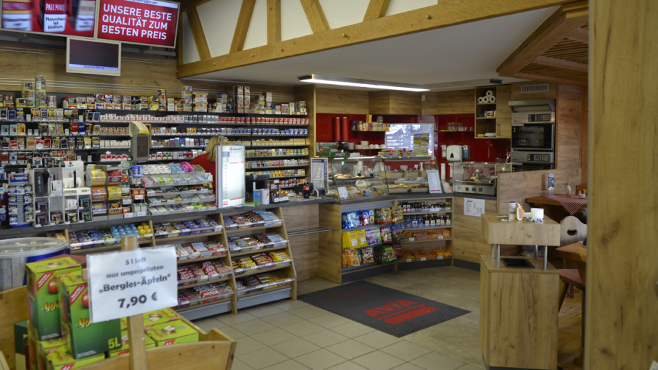 von 14: Vor dem Durchgang von Tankstellenshop zur Werkstatt wird das Personal in bestem Schwäbisch daran erinnert, die Tür zuzumachen, es ziehe sonst.