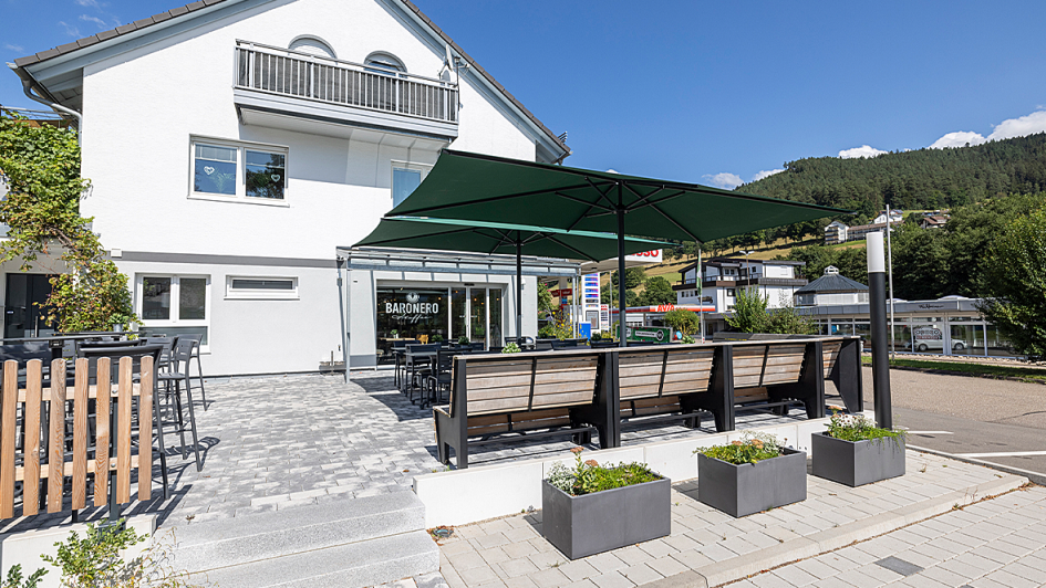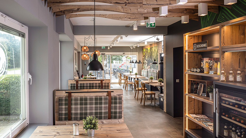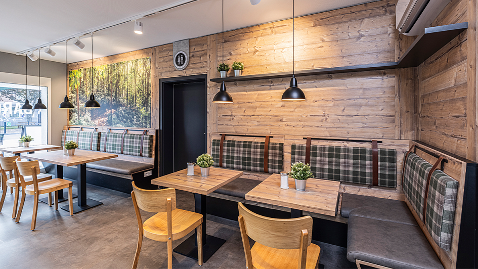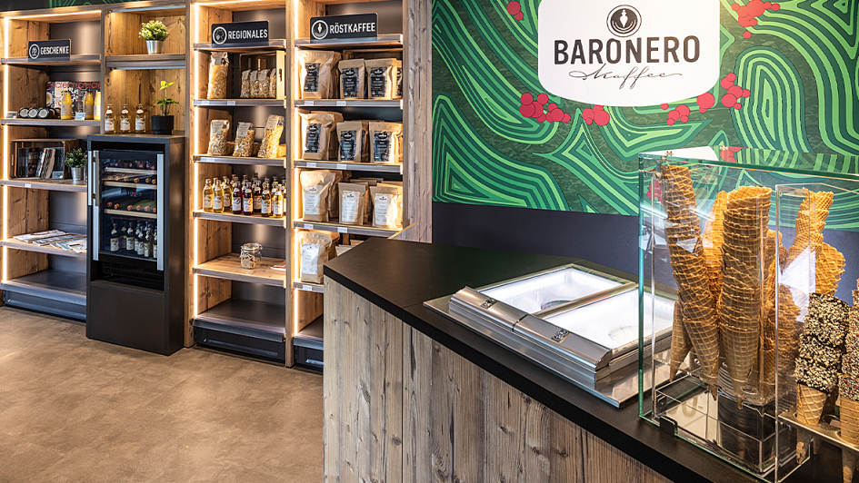 von 8: Belegte Backwaren, Hamburger, Leberkäsweck, frische Pizzen und Kuchen: Die Auswahl im Foodcounter im 8-Sterne-Dorf Baiersbronn kann sich sehen lassen.