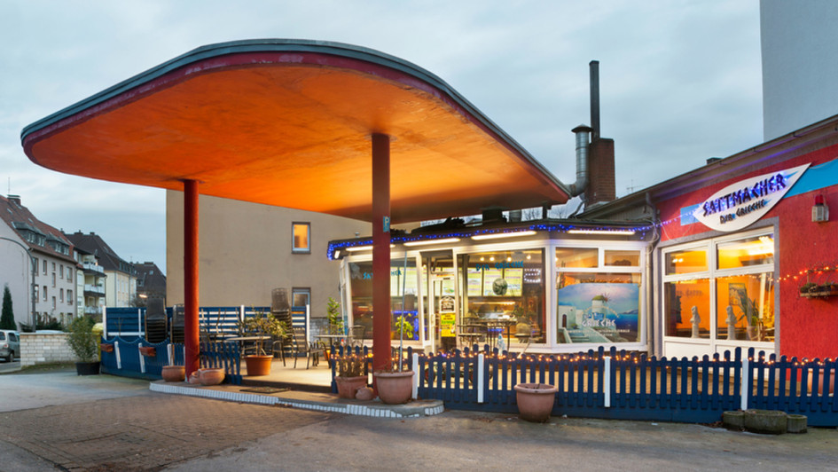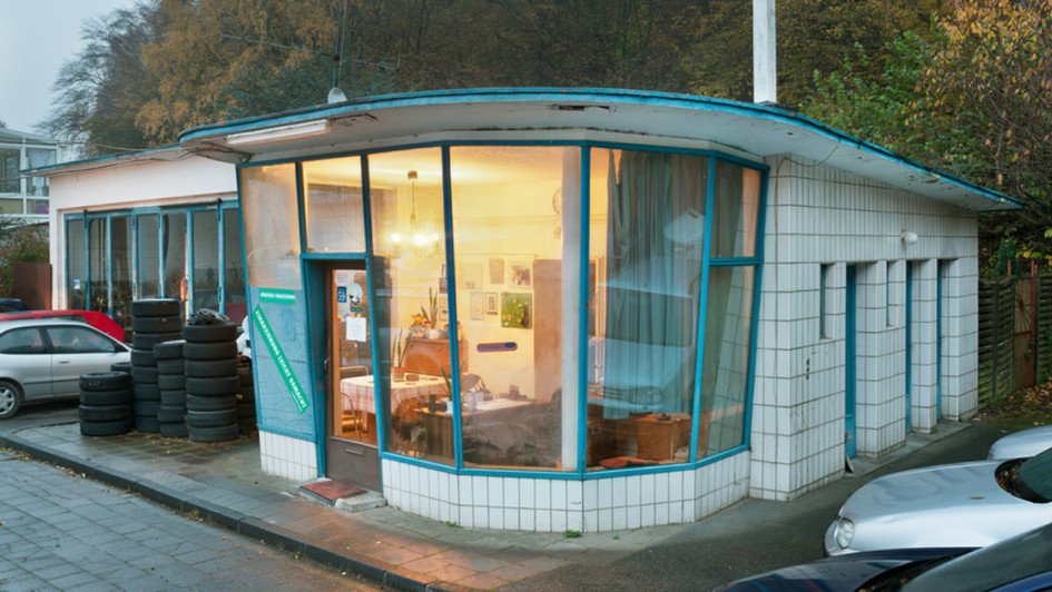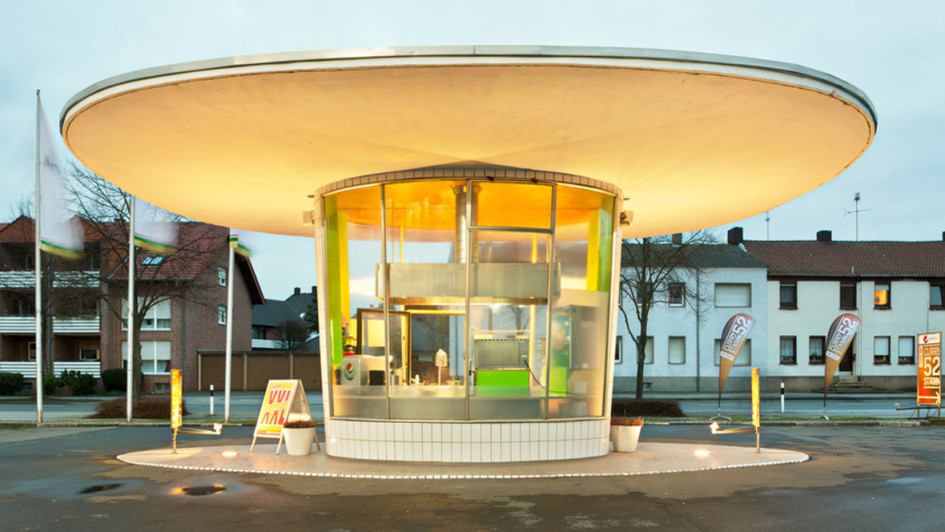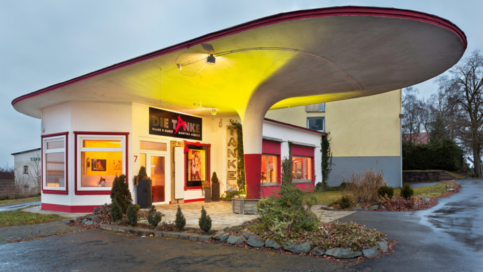 von 7: Das Cover-Motiv des Bildbandes [ABGETANKT] fotografierte Joachim Gies 2013 in Netphen. Die ehemalige Tankstelle dient jetzt als Wohnhaus.