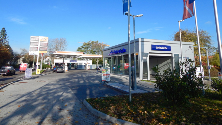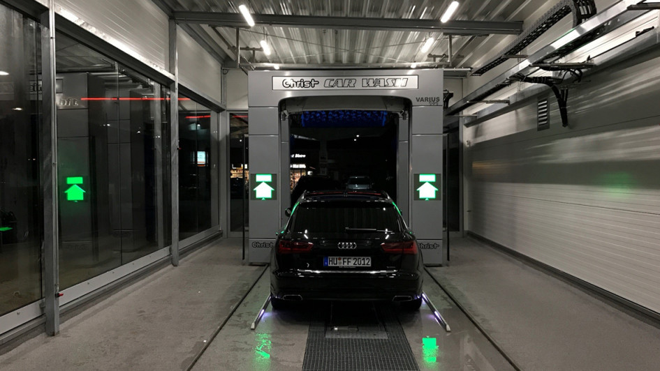von 6: Nach dem Abriss einer alten Werkstatt war genügend Platz auf dem Tankstellengelände in Offenbach vorhanden, diese 14 Meter lange Halle zu bauen. Hinein installierte Waschanlagenhersteller Christ eine Doppelportalanlage mit dem Namen Varius 1+1.