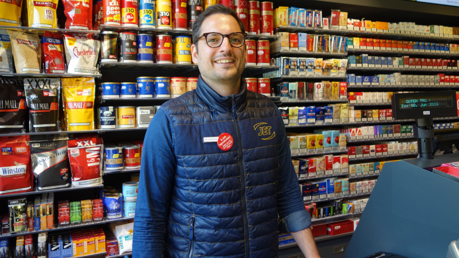 von 6: Für Pächter Marcel Rothländer ist die Tankstelle in Hamburg die zweite JET-Station. Das sagt er zum neuen Konzept: „Mein Bruder und mein Cousin arbeiten ebenfalls bei A-Gesellschaften, so dass ich einen guten Einblick in die Branche habe und sagen kann, dass sich JET von anderen Konzernen abhebt. Gerade was den Bereich Innovation angeht ist JET meiner Meinung nach immer noch einen Schritt voraus. Wir können zum Beispiel Preise über das Smartphone eingeben, das gibt es teilweise woanders immer noch nicht. Und auch das neue Konzept hebt sich natürlich von den anderen ab. Es ist alles sehr hell, geradlinig, sauber und nicht so zugestellt. Das gefällt den Kunden, wie eine Umfrage und das Feedback im Tagesbetrieb zeigen. Außerdem haben sich unterm Strich die Arbeitsabläufe vereinfacht, beispielsweise das Nachfüllen der Kühlregale. Jetzt fehlt nur noch die Waschanlage, die aber in Planung ist.“