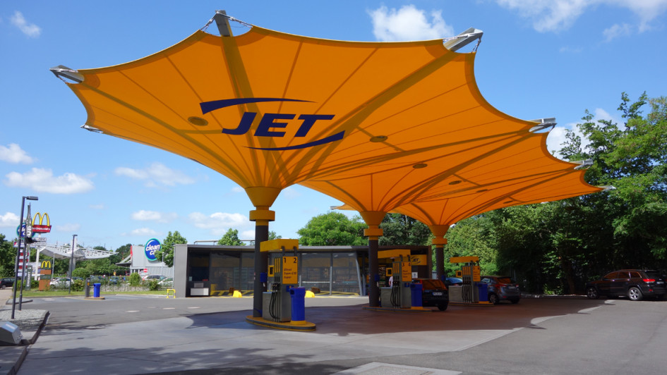 von 6: Die auffälligste Neuerung: ein Tankstellendach aus widerstandsfähigem Textilmaterial. Biermann: „Anstelle einer Industriehofatmosphäre wollten wir eine helle, freundliche Atmosphäre erzeugen.“