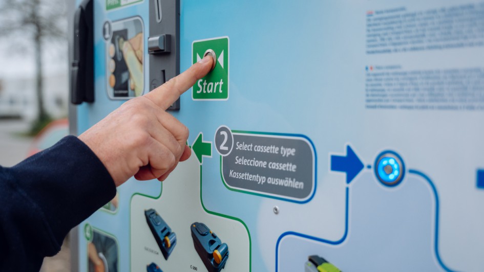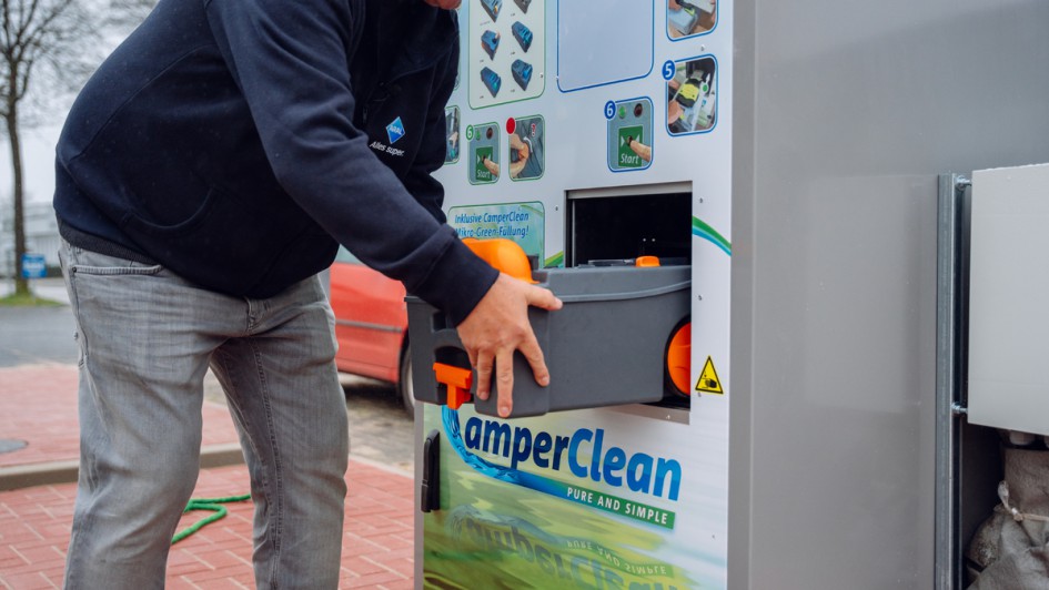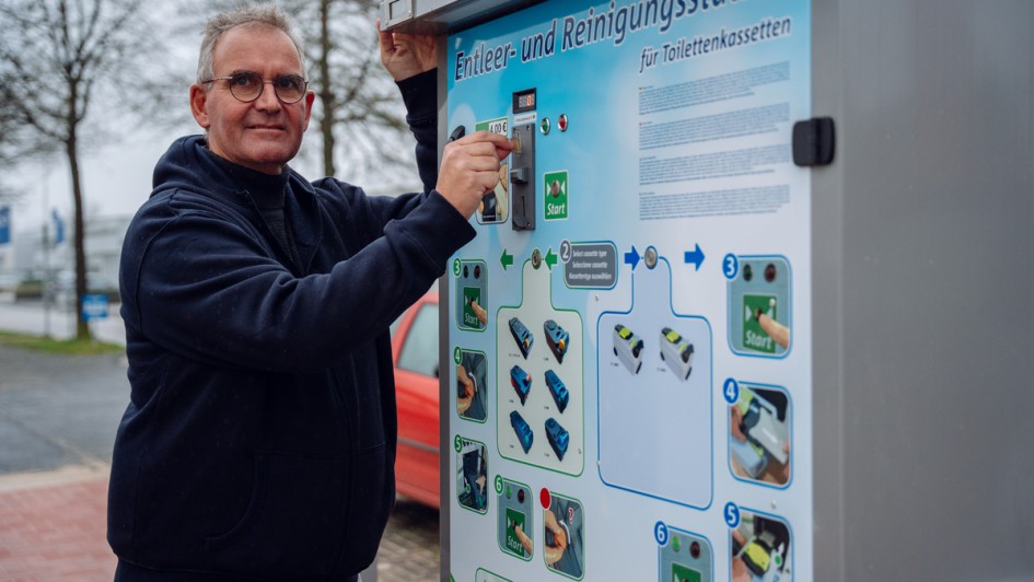 von 9: Der Automat ist für alle gängigen WC-Kassetten geeignet und leert auf Knopfdruck die Kassetten über einen mechanischen Kipp-, Saug- und Spülmechanismus. Nach drei Durchgängen wird eine chemiefreie Lösung eingefüllt, sodass die WC-Kassette wieder einsatzbereit ist im Wohnmobil.