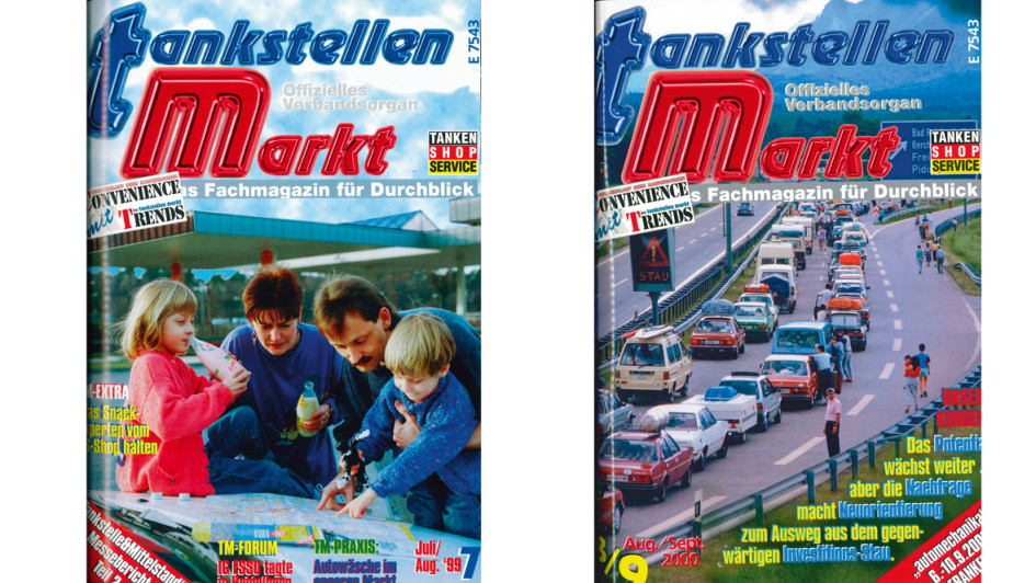 Das Cover August/September 2000 ist metaphorisch zu verstehen: Das Potenzial mit den Tankstellenkunden wachse weiter, meint tankstellen markt, aber man müsse sich neu aufstellen, sonst komme man nicht aus dem Investitions-Stau.