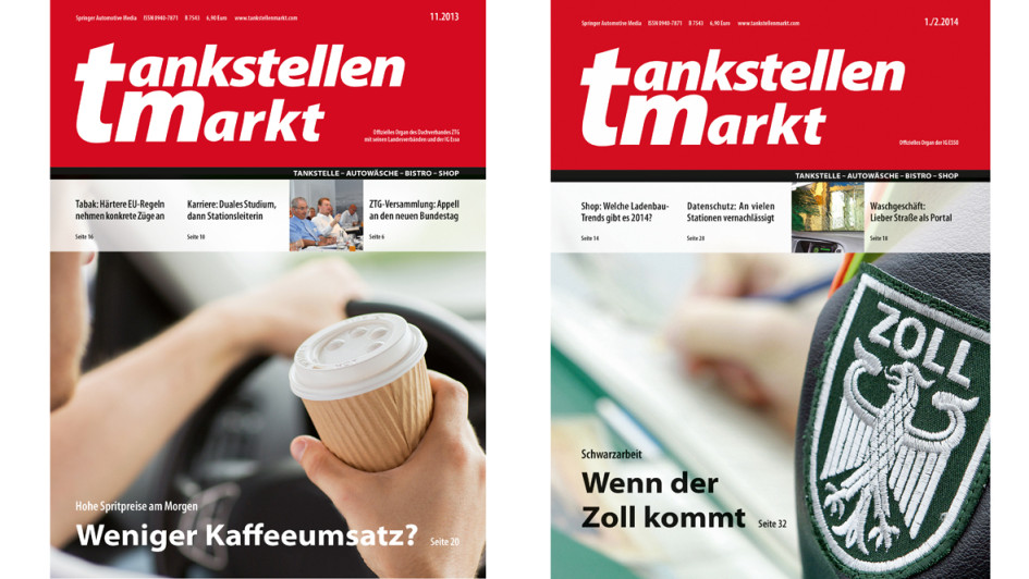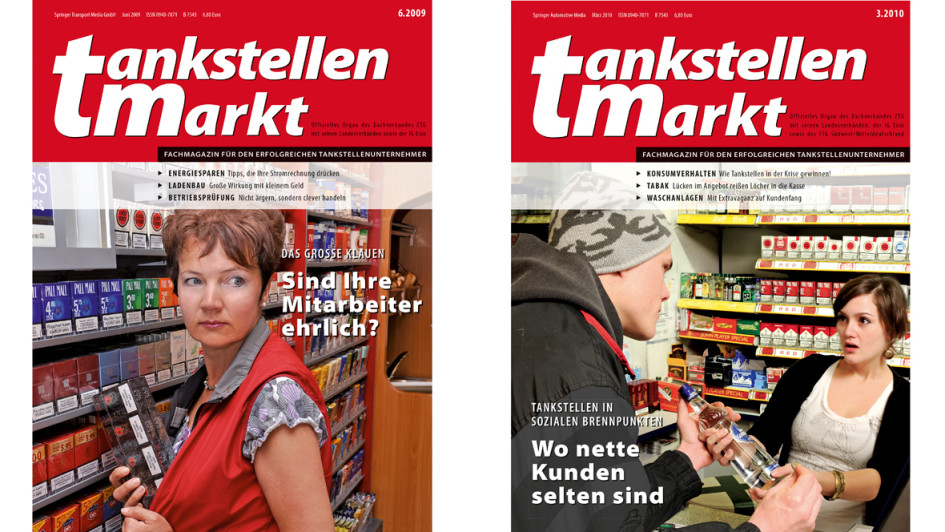 von 13: "Sind Ihre Mitarbeiter ehrlich?", fragt die Juni-Ausgabe 2009 und beschäftigt sich mit dem Thema Diebstahl durch Mitarbeiter. Nachdem Springer Automotive Media den tankstellen markt gekauft hatte, erschien er ab September 2008 in weißer Schrift auf rotem Grund.