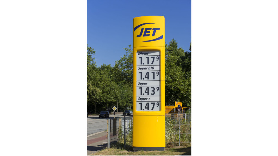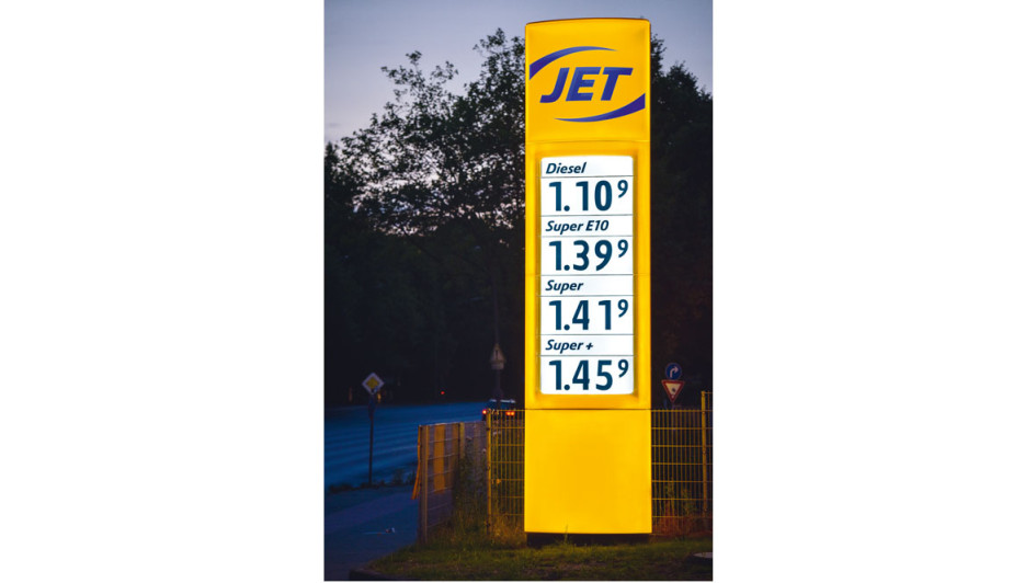 von 5: Der Preismast, den die Designagentur F + S gemeinsam mit E Ink und GDS für Jet entwickelten, ist mit den weltweit größten E-Paper-Displays ausgestattet.