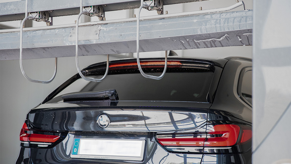 von 16: Familie Meyer hat sich für Washtecs optionales Paket "Wheel-Flash und Wheel-Jet" entschieden. Das garantiert perfekten Chemieauftrag und eine stets zuverlässige Reinigung selbst für Felgen bis 21 Zoll.