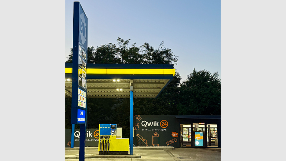 von 9: Der erste Smart Store Qwik24 in Form eines Containers steht an einer unbemannten Tankstelle von BK Benzin-Kontor im oberbayerischen Bruckmühl.