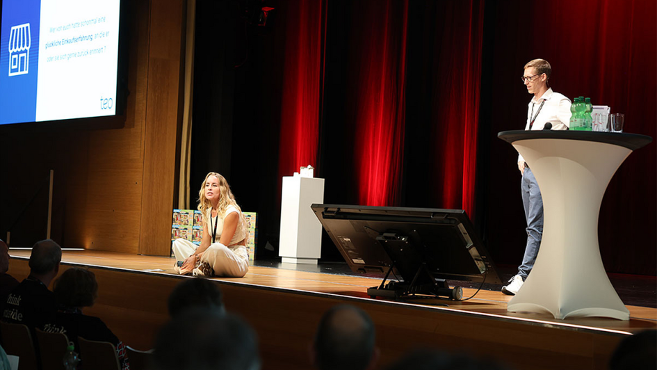 von 8: Locker und inspirierend: Lisa Bädecker und Nils Scharff von Smart Retail Solutions über den teo-Relaunch. Das war einer von 20 Vorträgen und Diskussionen zu den neuen Entwicklungen im Bereich Smart Stores 24/7.