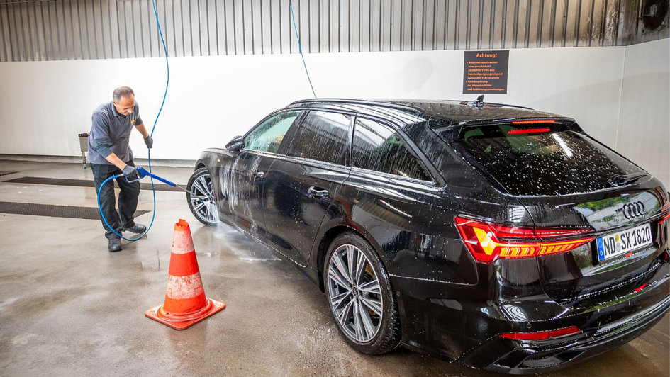 von 10: Über insgesamt sechs SB-Waschplätze verfügt Auto Primus in Darmstadt. Dabei ist ein Platz speziell für Besitzer von Bonuskarten reserviert.