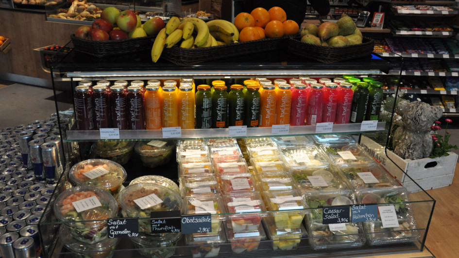 von 9: Wie Aral mit Rewe to go mehr frische Produkte in die Tankstelle bringt, sieht auch das Star-Konzept eine Auswahl an Salaten, Obst und Smoothies vor.