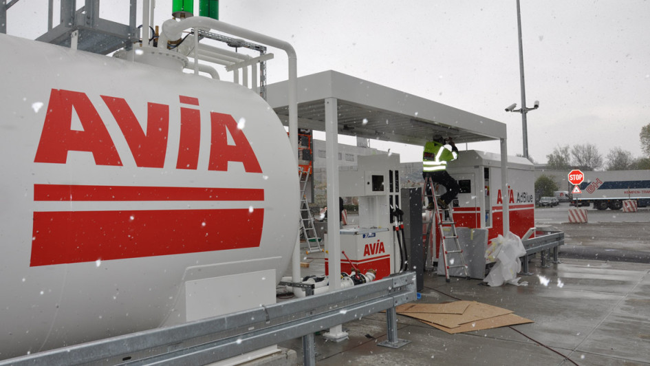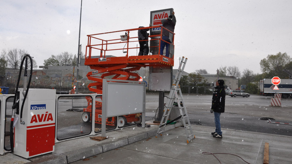 Einen Tag vor der Abnahme der Tankstelle erledigten die Techniker von Führer & Weingartner, unglücklicherweise etwas behindert durch leichten Schneefall, die letzten Arbeiten.