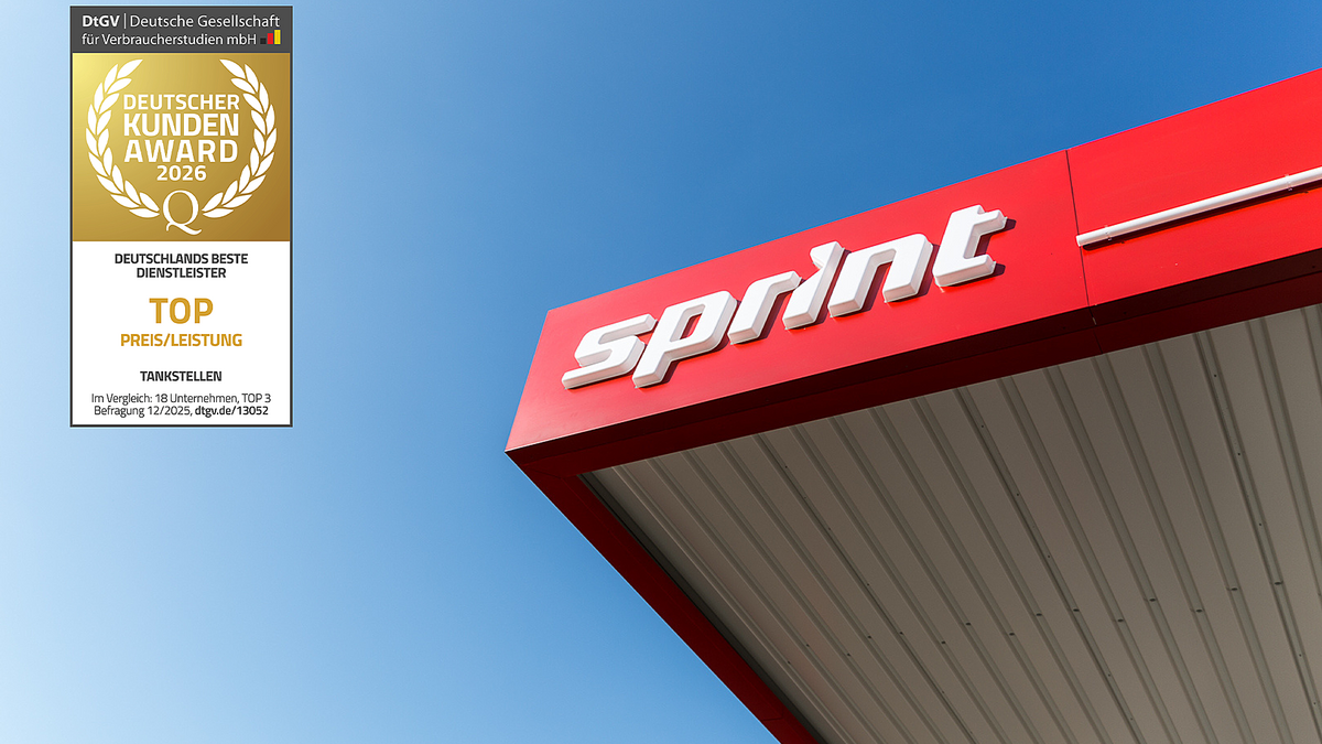 Erstmals erreicht das konzernunabhängige Familienunternehmen Sprint beim "Deutschen Kunden-Award" den 3. Platz in der Kategorie "Preis/Leistung" in der Branche "KFZ und Mobilität – Tankstellen". Nur JET und star (Orlen) liegen auf dem Siegertreppchen davor.