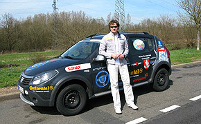 Milius wählte bewusst kein Fahrzeug der Oberklasse. Er fährt mit einem serienmäßig ausgestatteten und frontgetriebenen Dacia Sandero Stepway. Der Dacia hat einen 1,6 Liter Benzinmotor, der bei einer Leistung von 87 PS eine Höchstgeschwindigkeit von 175 Kilometer pro Stunde erreicht. Das Auto unterscheidet sich grundsätzlich nicht von der Serienversion – in einigen Details wurde es jedoch für die lange Reise vorbereitet: Um die Lackflächen vor Beschädigungen zu schützen, haben Sonax Experten die Sonax Premium Class Nano-Lackversiegelung aufgetragen. Eine glasharte Nano-Hybrid-Schutzschicht schützt den Lack bis zu neun Monate vor aggressiven Umwelteinflüssen. Außerdem bietet eine Hartwachskonservierung zusätzlichen Lackschutz.